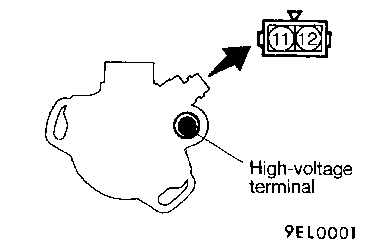 2. Measurement of the secondary coil resistance Measure the resistance between the high-voltage terminal and connector terminal 11.