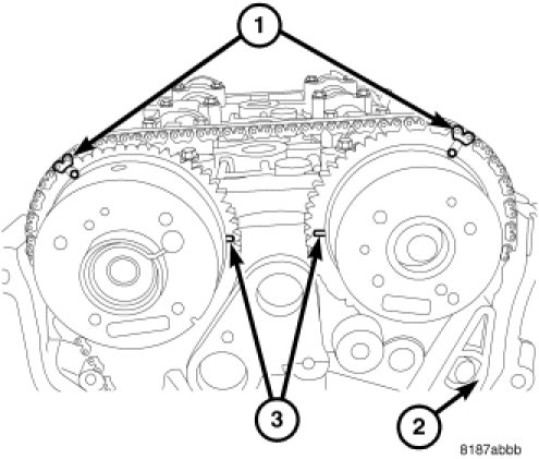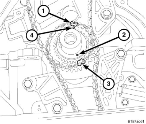NOTE: If the timing chain plated links can no longer be seen, the timing chain links corresponding to the timing marks must be marked prior to removal if the chain is to be reused.