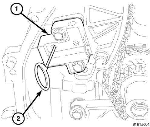 8. Install timing chain tensioner (1) and tighten bolts to 12 Nm (105 in. Lbs.).