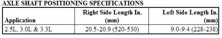 NOTE: Check axle shaft positioning if engine/transaxle is loosened or moved or if front structural damage has occurred. Incorrect axle shaft positioning may result in premature failure of components.