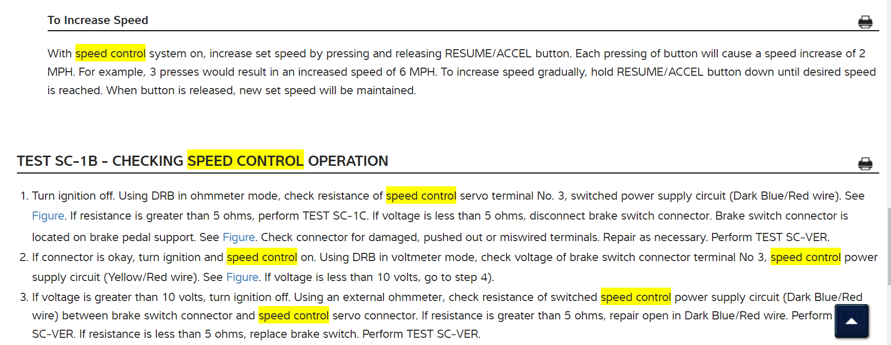 Don't like to throw parts at a problem, but since I have spare parts, swapped PCM with cruise circuit built in, swapped servo with vacuum hose, swapped control switch. No change in symptoms. The only things left are the wiring harness and speed sensor. Not interested in laying in a snow pile to change the sensor, but my question is: