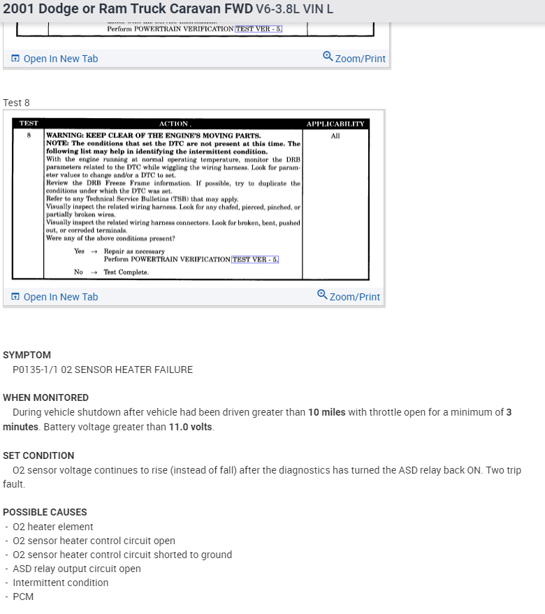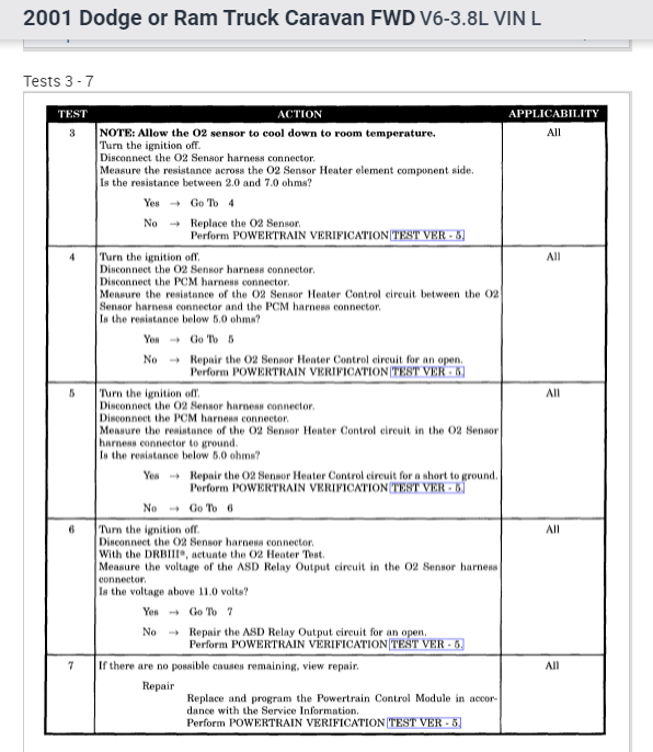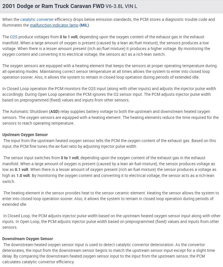 2001 Dodge Grand Caravan ES AWD with 3.8l engine I have a check engine light and brought it to AutoZone for a reading. They told me it was an Oxygen Sensor. They said there were 3 sensors and it did not tell them which one was bad. Any ideas on how to determine which one is bad without spending the money for all 3? (I was going to buy one and go around swithcing them out). NOTE: I already tried to "clear" the code, but the check engine light came back on within a week. Thank you!