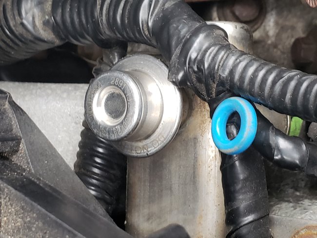 4 cylinder 2.4L Dodge Caravan with Fuel Injection. 160,000 miles. The fuel rail has a port for what I think is used to measure pressure with a gauge that is similar to the stem of a tire for air. Then there is another steel tube w/cap that is protruding perpendicular to the rail in the middle of the rail. This points towards the front of the car under the manifold. I believe this is a pressure regulator? There are no wires or hoses attached. The cap can spin but I can not remove it. The gas leaks from this cap in a very slow drip for the first few minutes then it stops once the car has been driven for a few minutes. The injectors are fine and do not leak and the car runs very well. Do I Need to replace the entire rail or can I fix this part where the cap is. Is there an "O" ring here? Can the cap come off? Thank you!