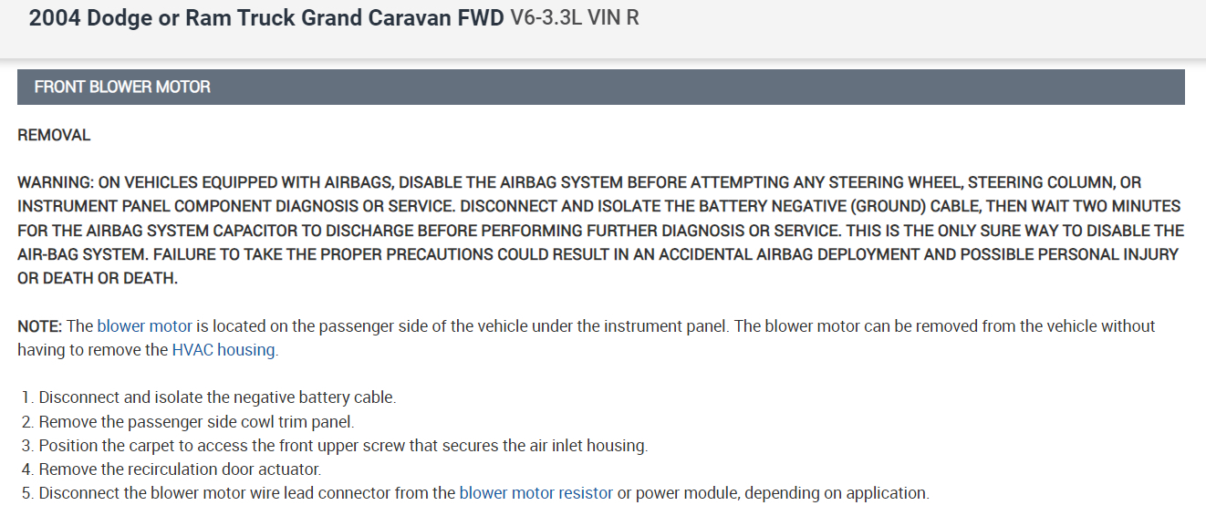 2006 Dodge Caravan Replacement Of The Front Blower...