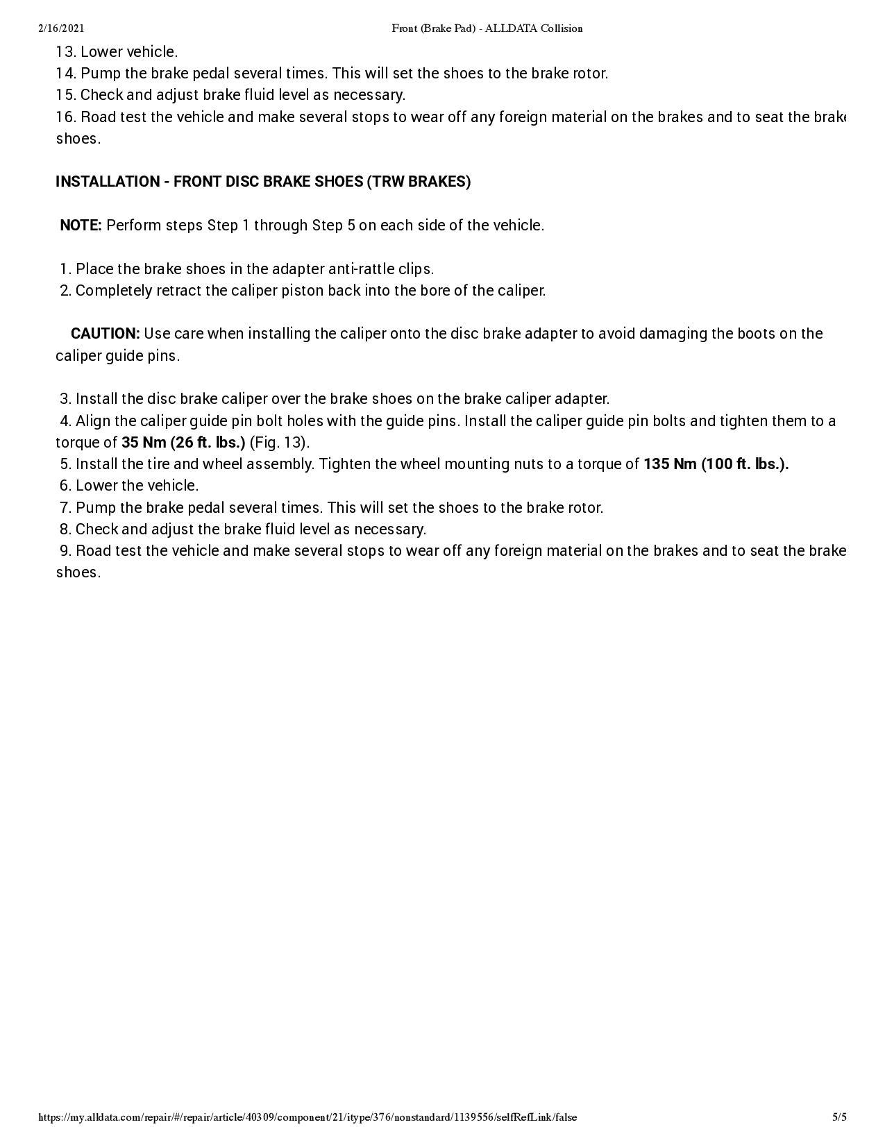 No problem, i have attached below the instructions for replacing front brake pads followed by instructions for replacing the rotors. Also for some really useful information for replacing your front brake pads and rotors be sure to check out the repair guide at the link below. Here is a guide to help you step by step with instructions in the diagrams below to show you how on your car.