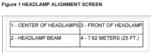 Position vehicle on a level surface perpendicular to a flat wall 7.62 meters (25 ft.) Away from front of headlamp lens (Figure 1).