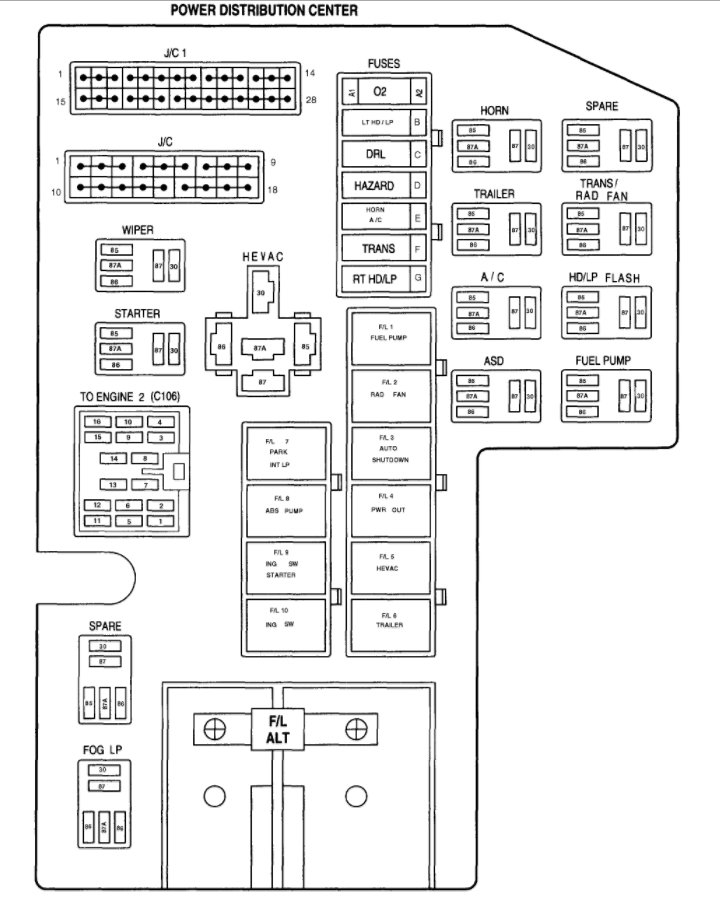 Hi dirtrider501. Welcome to the forum. First of all, understanding how the circuit works will help in diagnosing it. When you first turn on the ignition switch, the Engine Computer turns on the automatic shutdown relay (ASD) for one second to insure fuel pressure is up and ready for starting. Besides the fuel pump or pump relay, the ASD relay also sends voltage to the ignition coil, injectors, oxygen sensor heaters, and alternator field. If you hear the hum of the fuel pump for that first second, you know the ASD circuit is working.