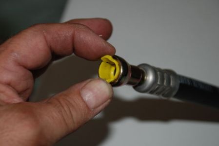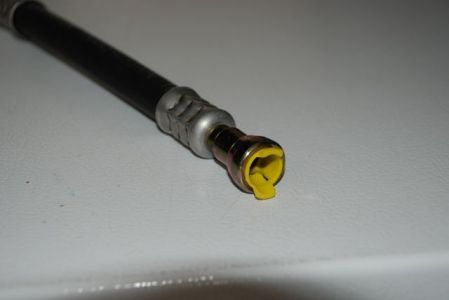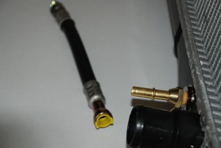 After much searching I have come up with the answer to my own question. As a donation I will gladly depart this info to ALL as my DONATION. No tool is needed to remove this type of quick connect fitting. To remove first clean the fitting very very well by removing all grit and grim. (brake cleaning fluid, wd40, compressed air.) Then grip the two plastic wings and squeeze. At the same time move fitting slightly toward radiator to relieve pressure on plastic clip against the knurl. Then pull away from radiator fitting. The secret is that the clip must be absolutly clean to release from the knurl on the fitting. Also someone suggested replacing the fitting with a rubber hose and hose clamps. This would be ok for an emergency fix but you are eleminating a pressure valve that is part of the hose and quick connect fitting on the OEM assembly. Good Luck and keep it clean. ValleyMike