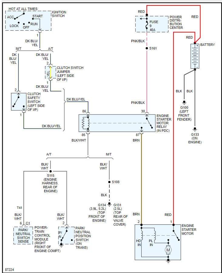 However, we need to check pin 85 of the relay to find out if the PCM is grounding the relay. If not then more then likely the park/neutral switch has failed and this is going to prevent the relay from grounding the relay.