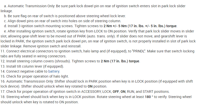 Removing the ignition switch does require removal of the steering wheel.