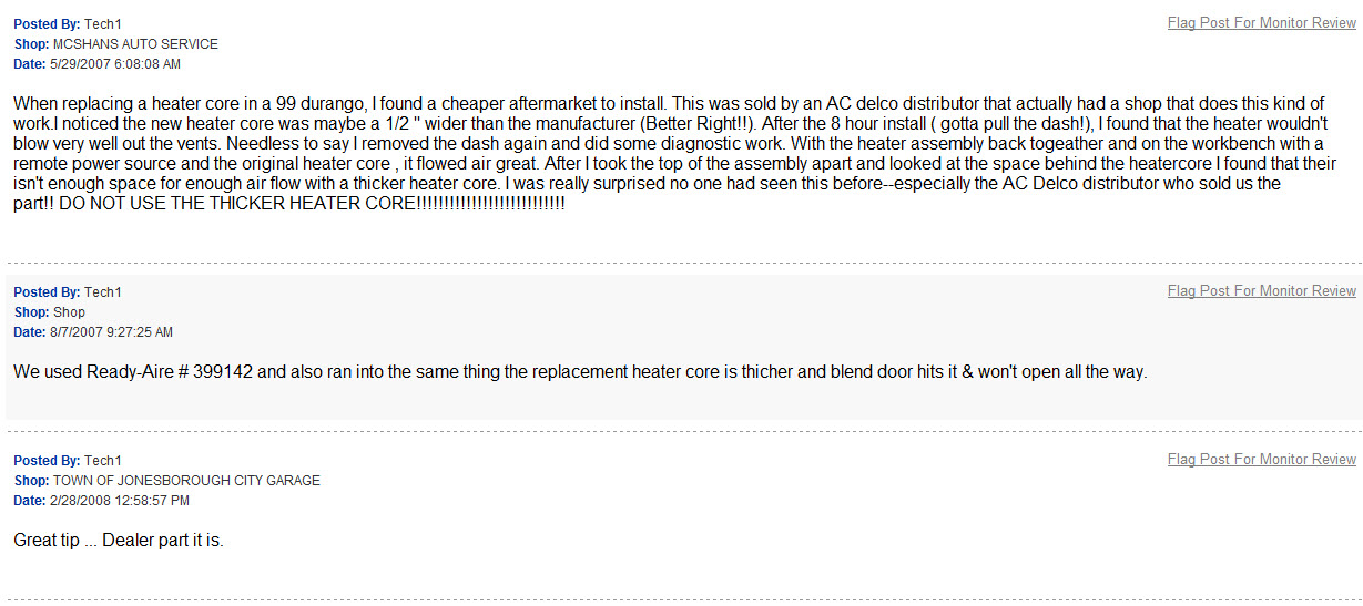 Remove the temperature control door from the unit and clean the unit out with solvent. Lubricate the lower pivot rod and its well and install. Wrap the heater core with foam tape and place it in position. Secure it with its screw.
