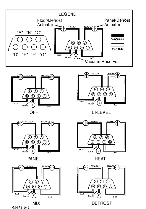 Disconnect the vacuum harness connector from the air conditioning control hose and vacuum feed line from the check valve.
