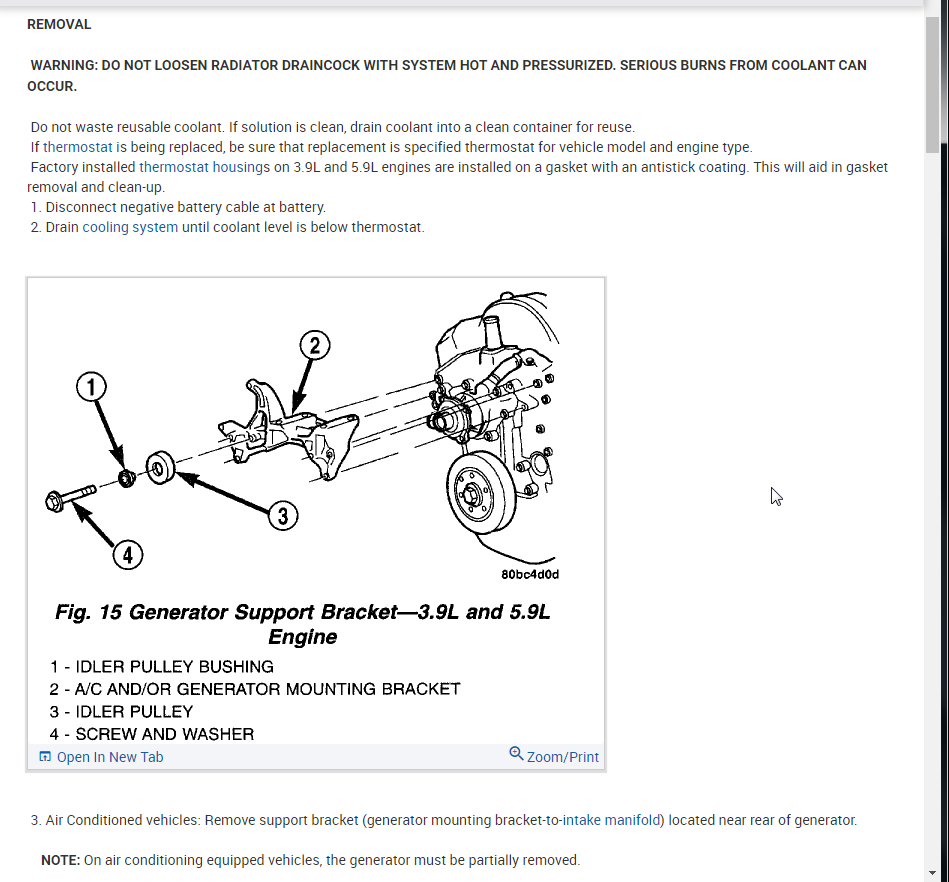 On most V-6 and V-8 models, the alternator must be removed or repositioned for access to the thermostat housing.