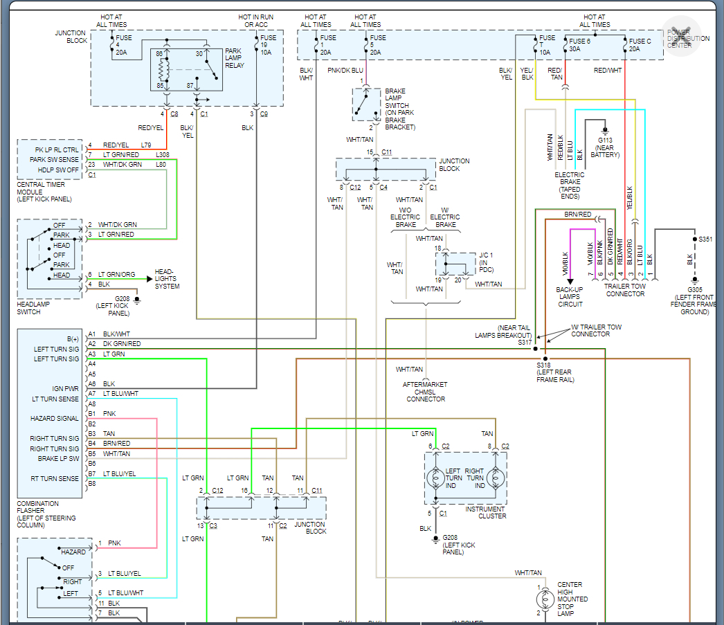 I am attaching the info below on how to test the module and the wiring diagrams. As you will see the park lights and wipers are run through the CTM so that is the likely common issue.