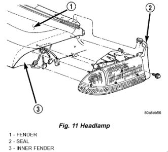 Position headlamp in inner fender panel and firmly push headlamp inward to lock into place.