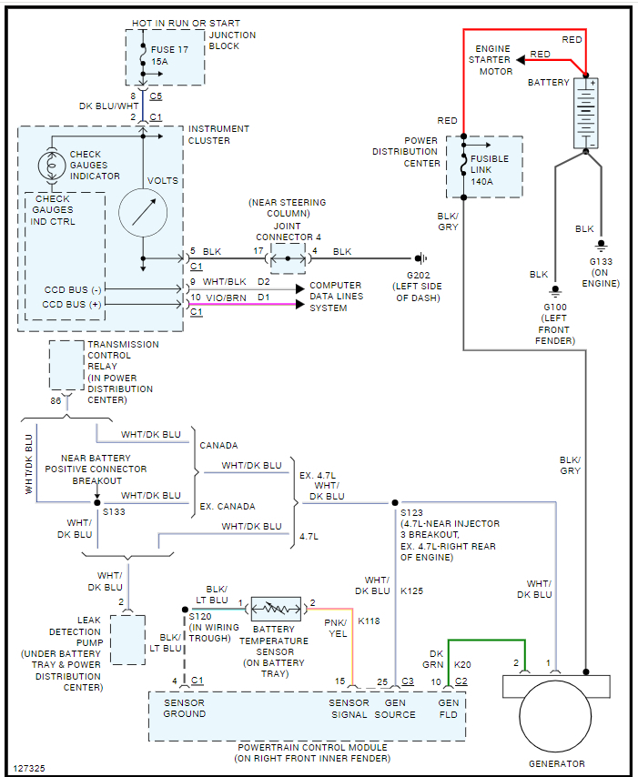 I have a 2000 Dodge Dakota 5.9 R/T 2wd with 150000 miles. When I start it up and start driving it everything seems fine. After a while of driving the check gauges light comes on and my voltage meter drops all the way down. It happens quicker if I have the a/c, lights, or radio on. I had the alternator tested while it was on the truck and it read bad. When I took it off the truck and had it tested it read good. I've checked for faulty wiring and I can't seem to find anything wrong. I also had the battery tested and it was good.
