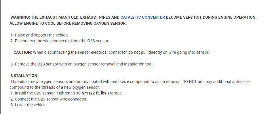 Related Oxygen Sensor Replace/Remove Content