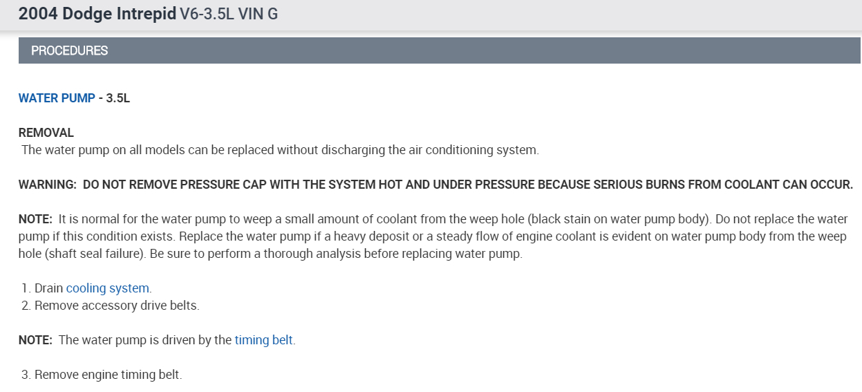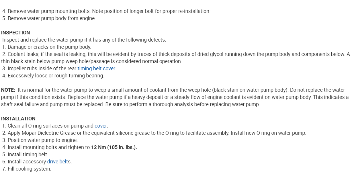 I had the water pump replaced on a 2002 Dodge Intrepid 2.7; 98,000 miles. The mechanic said the tensioner and timing chain were OK; engine clean no sludge.