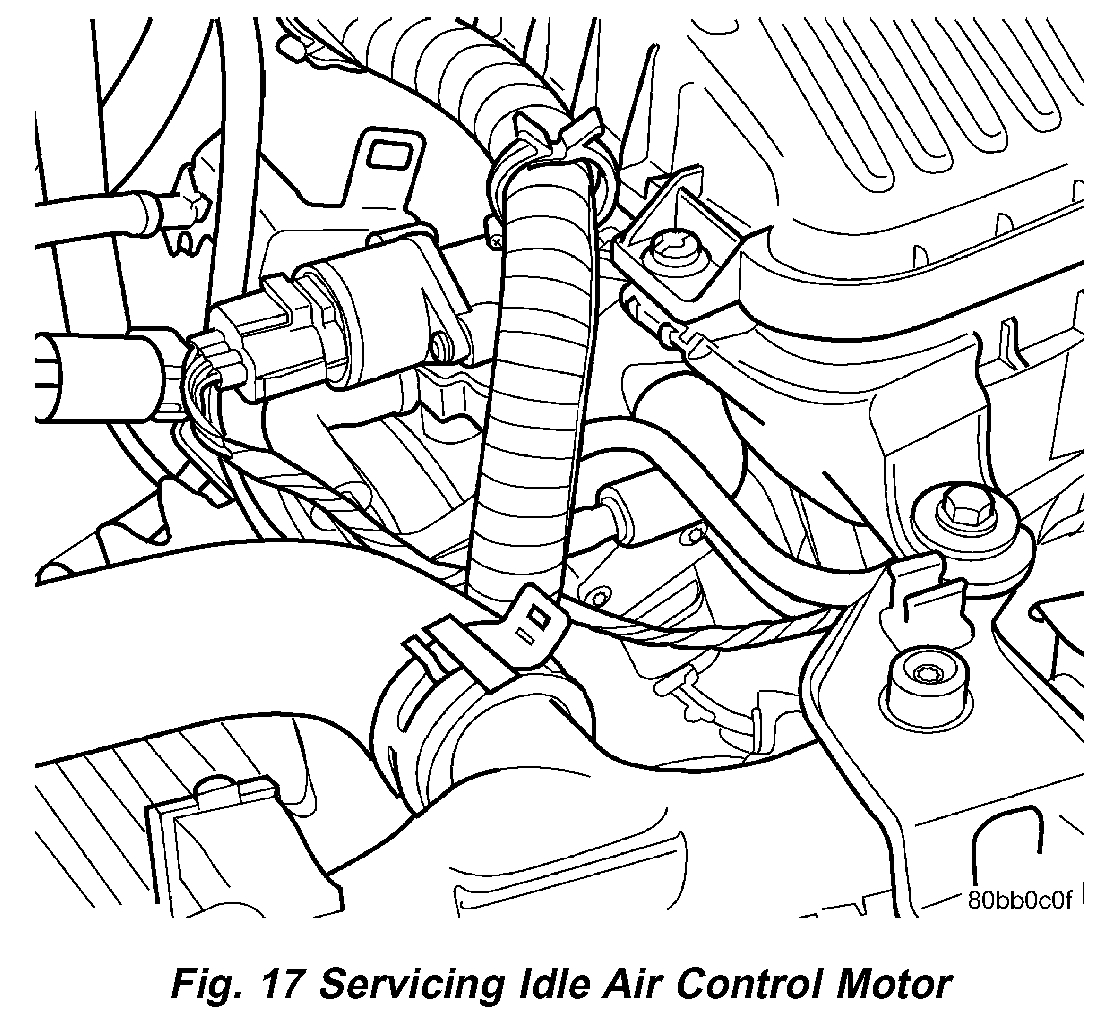 1. The new idle air control motor has a new O-ring installed on it. If pintle measures more than 1 inch (25 mm) it must be retracted. Use the DRB III Idle Air Control Motor Open/Close Test to retract the pintle (battery must be connected.)