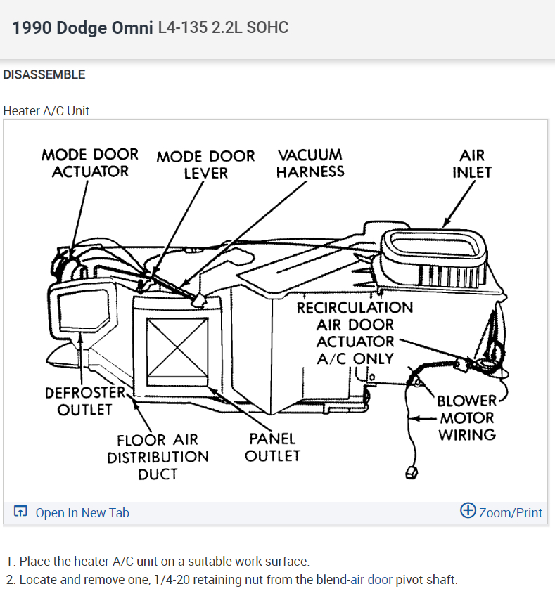 19. Disconnect blend air door control cable from unit and disengage cable from clip on air duct.