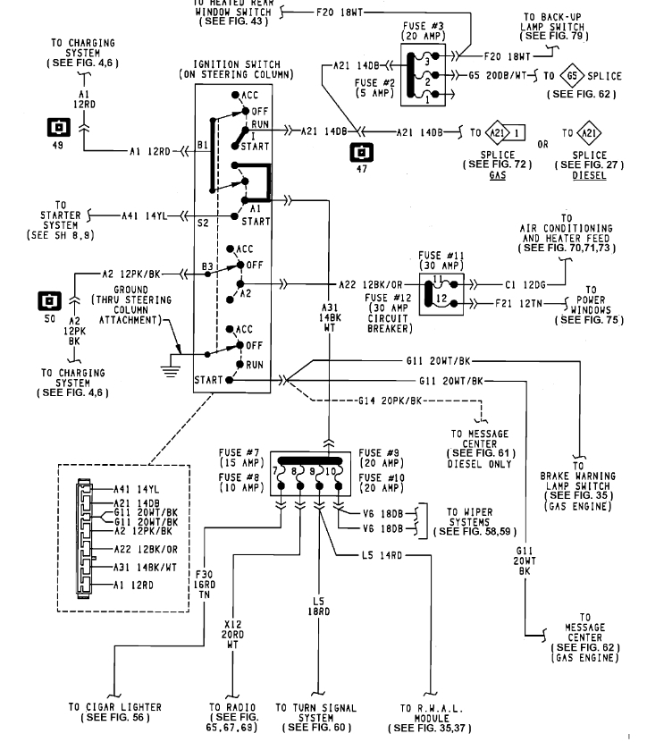 Check and test the orange fusible link this one here powers the ignition switch. Here are the wiring diagrams for the ignition switch. Check out the images (below). Let us know how it goes