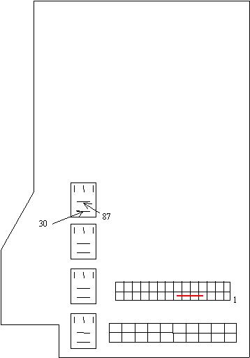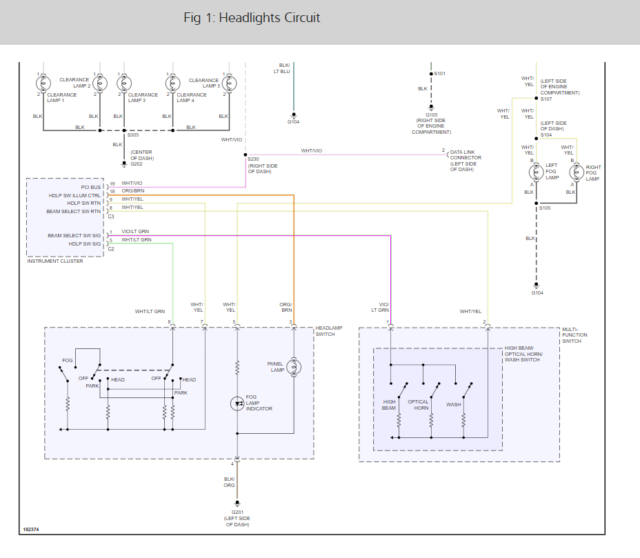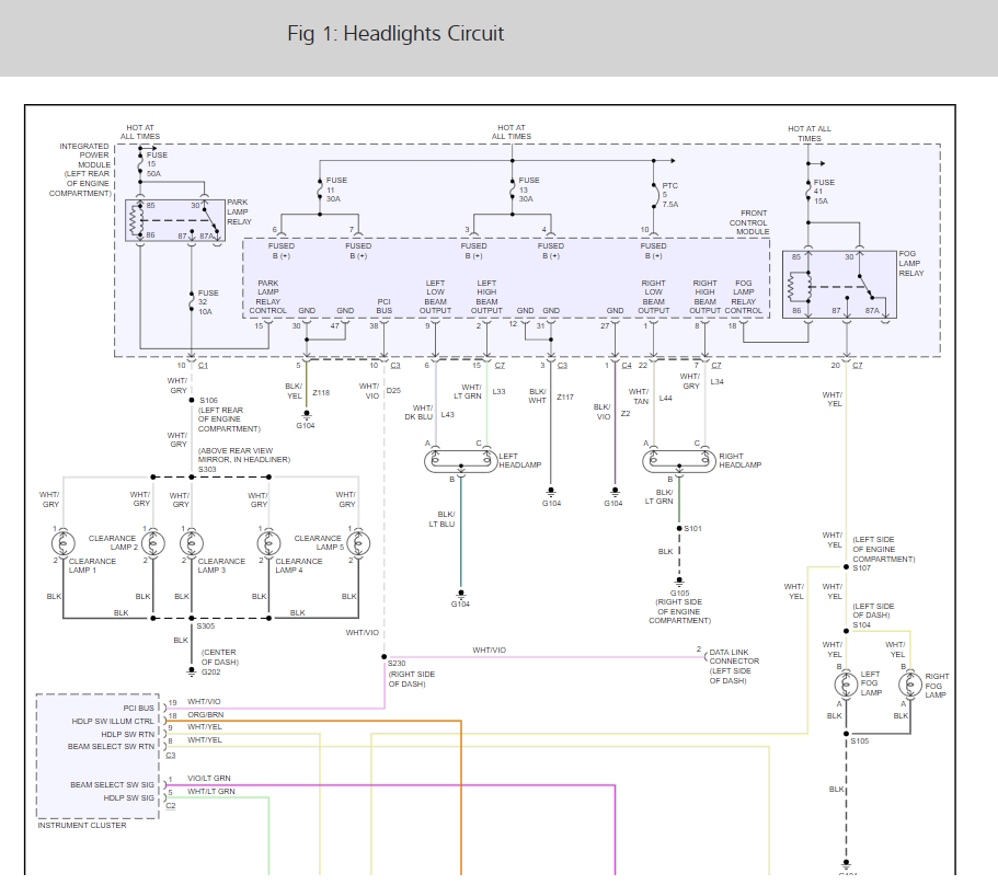 The Security relay ties into the circuit at the joint connector. Pull that relay out and use a stretched out paper clip or piece of wire to jump terminals 30 and 87. If the low beams light up, everything is okay from that point on, and it looks like the multi-function switch is the problem, but lets check a little further first.