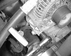 5. (On diesel engines): loosen, but do NOT remove, the alternator bracket-to-engine bolt.