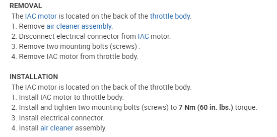 If you look below, I attached the directions for replacing the IAC. When you have it out, also confirm there is no excessive build-up of carbon where it goes into the throttle body. Before you just replace it, I would suggest servicing it first. Here is a link that explains how it's done.