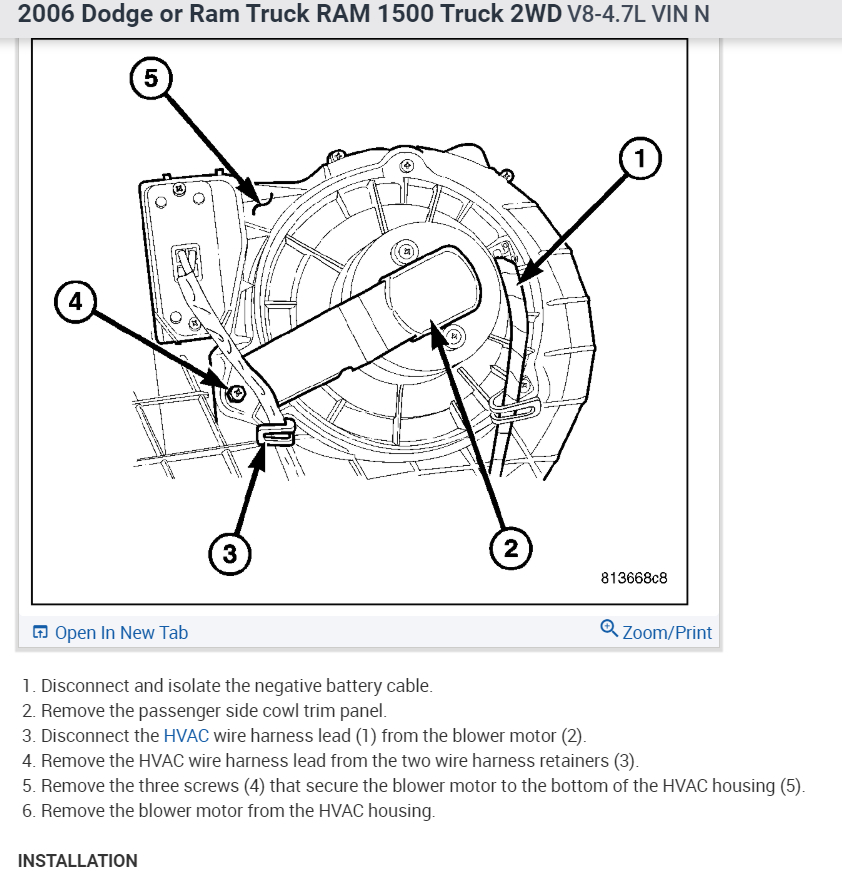 In shop several times in the past two years because of a defective re circulation door on the a/c. Even with this problem fixed the cab takes a very long time to cool down since the a/c fan blows weak. Even on the max fan setting, the motor seems to work fine but blows weak. Here in Phoenix with 110 + temperatures I find it uncomfortable to drive unless I'm on a trip and the truck's interior is allowed to cool for a couple of hours. Another thing that doesn't help is that the rear cab vent doesn't have the option to close, so I give up a/c to my rear cab (Mega Cab). This seems to be a problem with mid a/c systems, many have complained about this as I researched this topic online. My question is: Is there an high output motor that I can install to increase the flow? Thanks! HAZMAT9