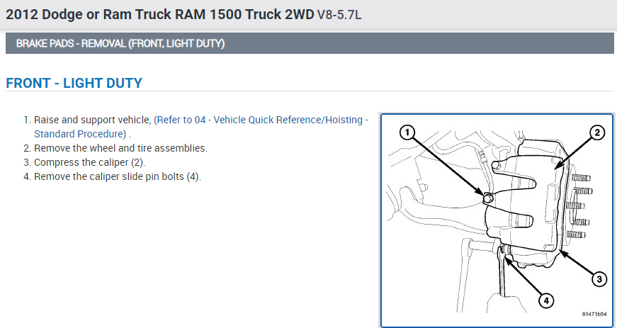 Here is the information you requested. This is a tutorial showing what is involved on how to change front brake pads and brake rotors with instructions below for your truck.