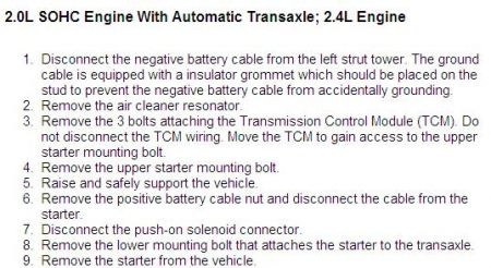 Remove the lower mounting bolt that attaches the starter to the transaxle.