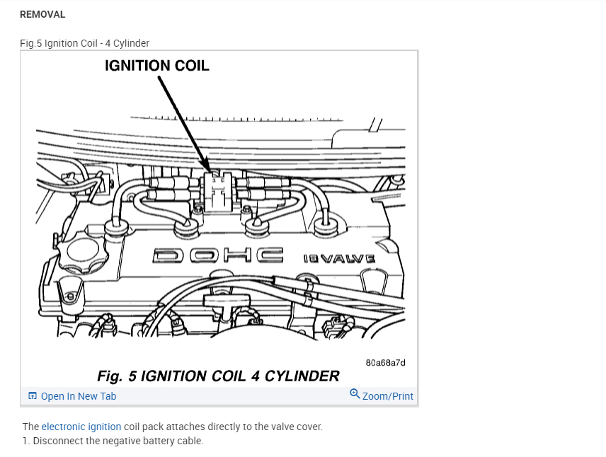 I am attaching the process below on how to remove this. You noted this is a 4 cylinder and the spark plugs are accessed through the valve cover, so you just need to pull the four plug wires that are coming from the coil.