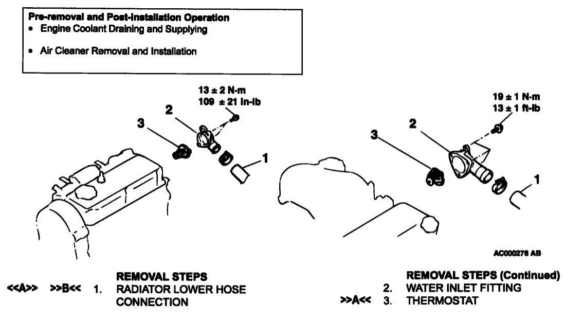 I am trying to find the exact placement of the Thermostat on my 2005 Dodge Stratus. The heater is not working properly. It is cold air coming out when the heater is on. The heater will warm up some after the engine temperature goes up. The engine temperature does not get above the half way mark. I need to know where exactly the thermostat is located and what kind of problems there could be with the engine. Thanks.