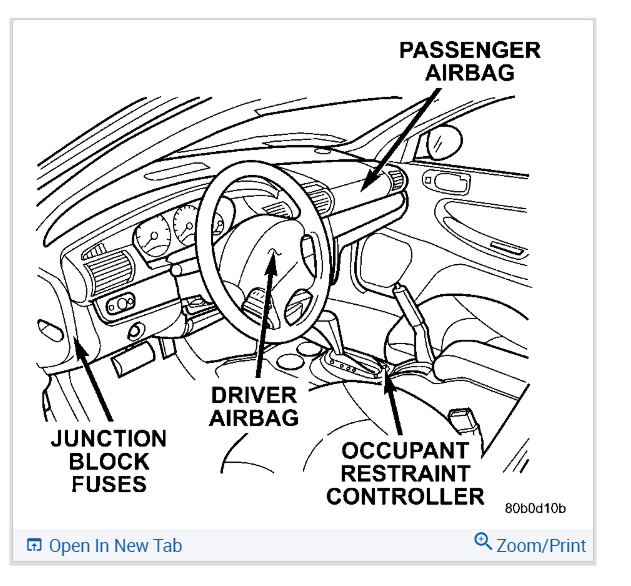 1. Open hood and disconnect the negative battery cable remote terminal from the remote battery post. Wait two minutes for the system reserve capacitor to discharge before servicing any airbag components.