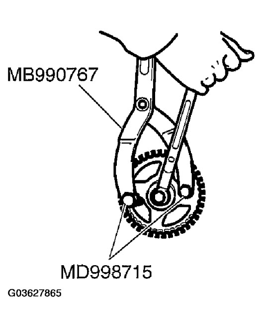 To avoid hitting the valves, rotate the crankshaft backward about an eighth revolution from top dead center. That way no piston will be all the way up. Rotate the cams to line up their marks, then rotate the crank in the normal direction to top dead center.