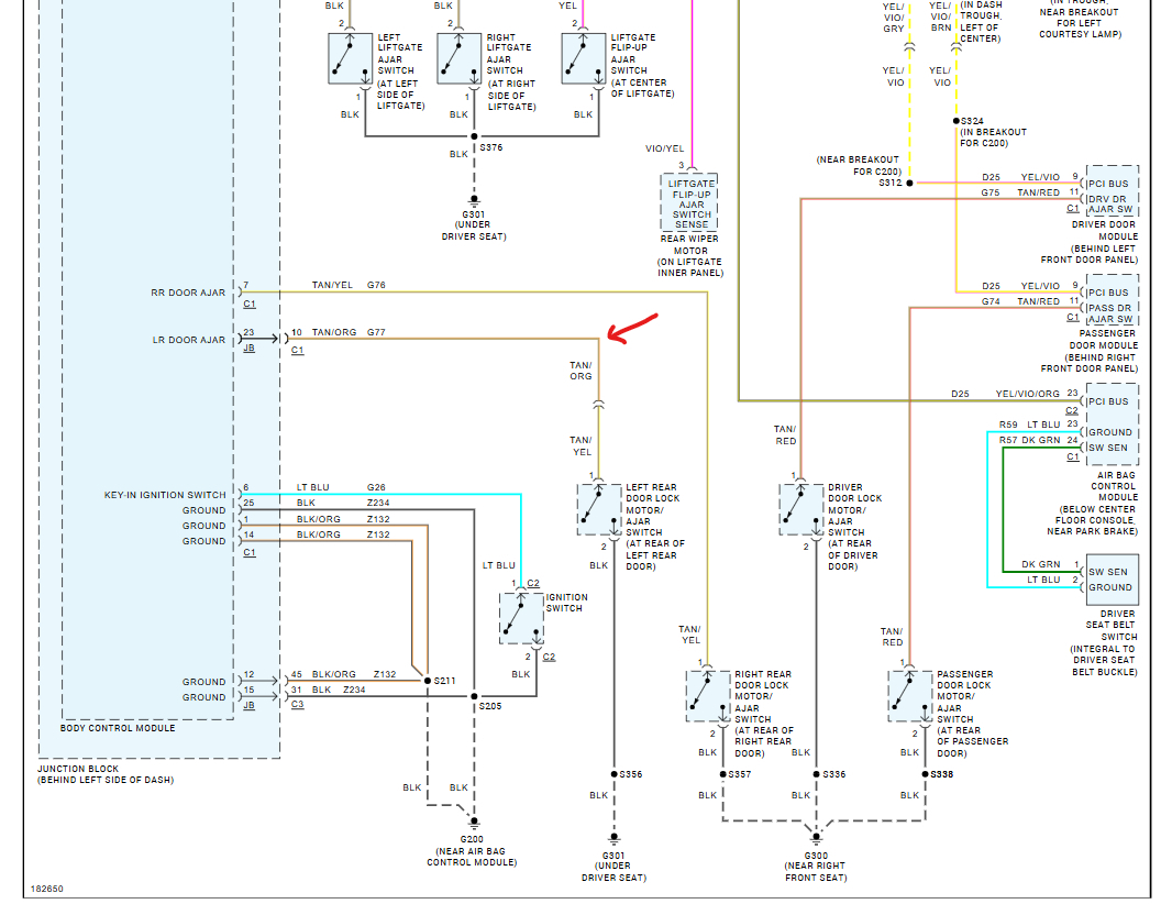 So there is an Ajar switch inside the door latch that needs to be grounded to turn the dome lights and warning lights off. This means the latch will need to be replaced, the wire color reasonable for the grounding is the red/tan wire FYI. Check out the images (below). Please let us know what happens.