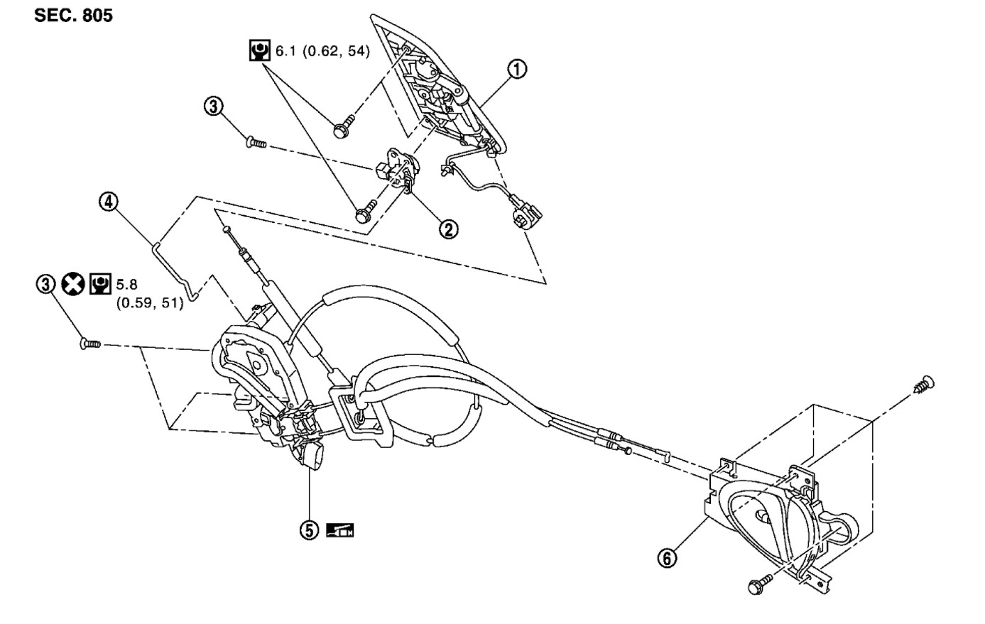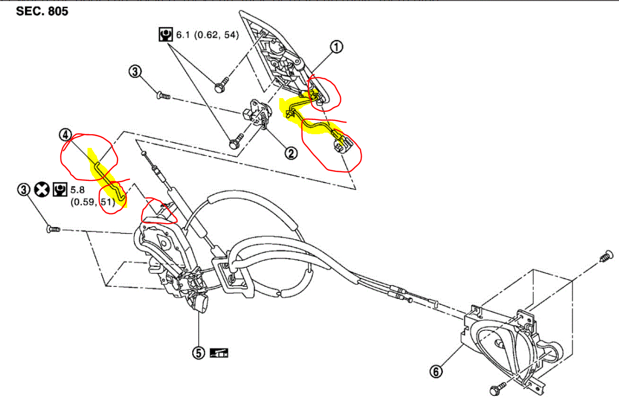 Take a look at the pic below. I circled the connection points of the exterior door linkage. With the panel off, have a helper actuate the exterior handle while you check to see if everything is moving.