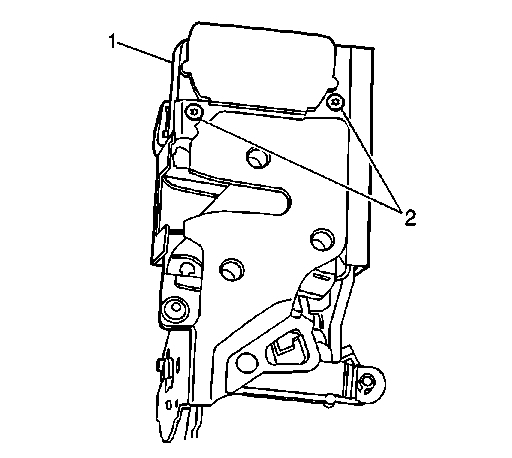 4. Remove the 2 screws (2) that retain the lock actuator (1) to the latch.