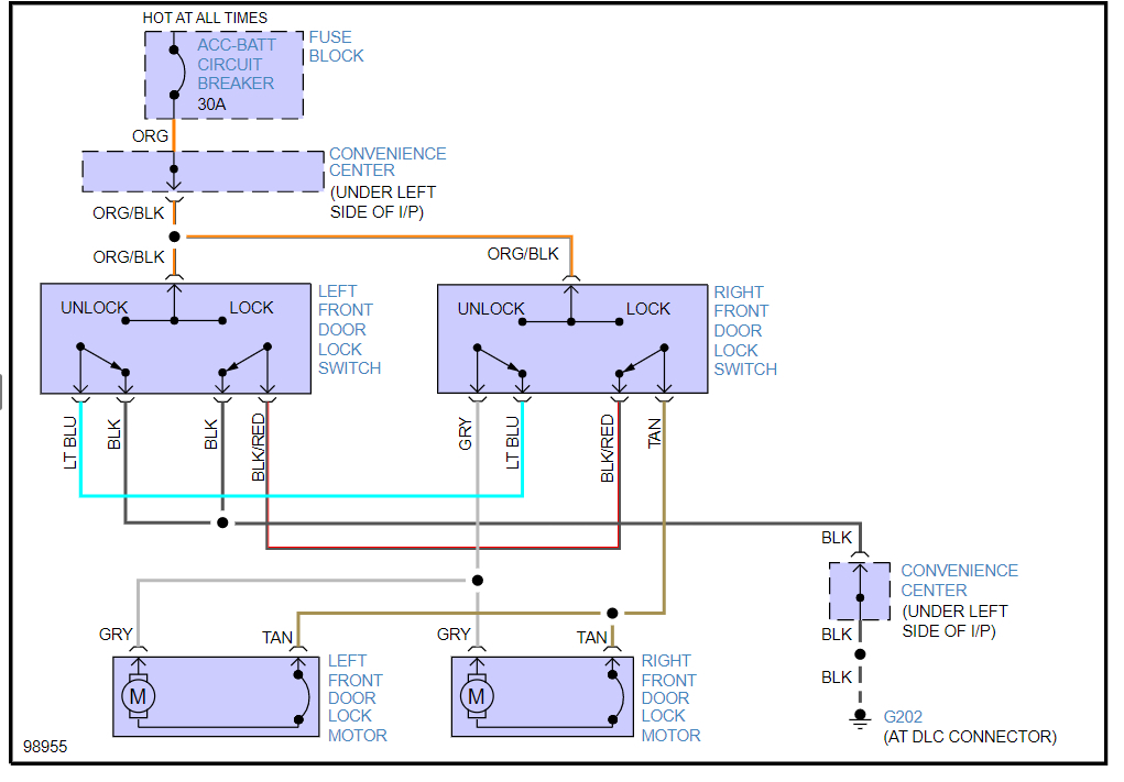 The driver's side door lock switch both locks and unlocks passenger side switch only unlocked. Grounds are good it's getting power.