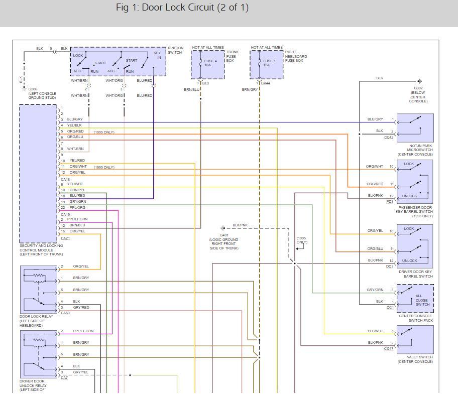The original problem was the battery was dead. Recharged the battery and I keep a trickle charger on battery to keep it up. Car starts and runs fine. The door locks do not lock when moving gearshift out of park, and all locks do not lock when turning the key in the driver's door. The trunk(boot) will only open using the key. The alarm system does not arm.