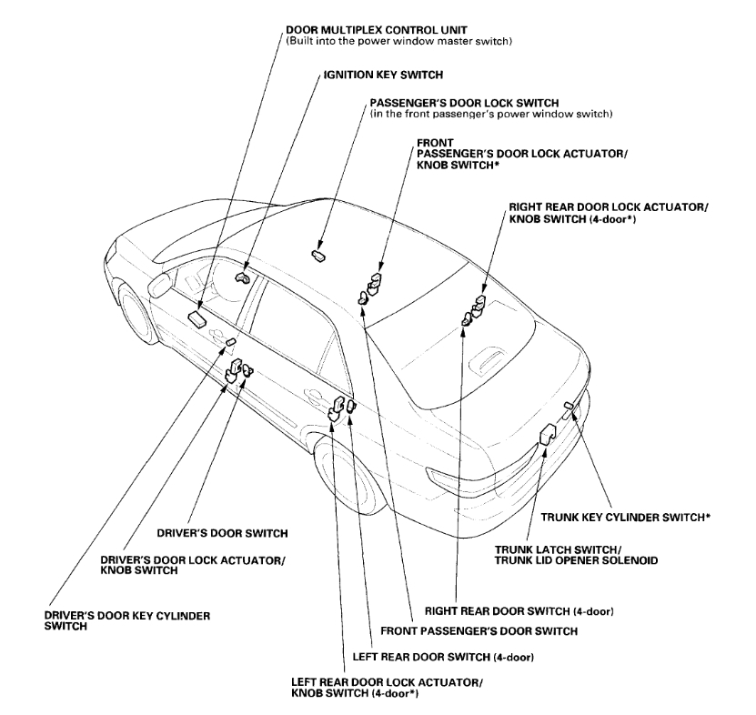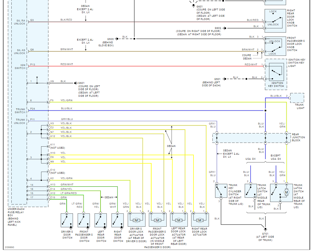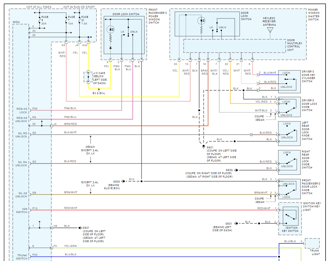 Any of the door lock knob switches can be causing this. Here is the door lock wiring diagrams as well to help you understand how the system works. Check out the images (below). Please upload pictures or videos in your response of any problems so we can see what to help you with.