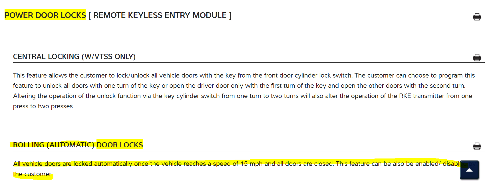 Not really a problem but I'm used to the doors locking once your going with the car and you get up to 15 or 20 miles an hour. Just wondering if they're supposed to look automatically on this car or not. I just recently bought this vast. Thanks in advance.