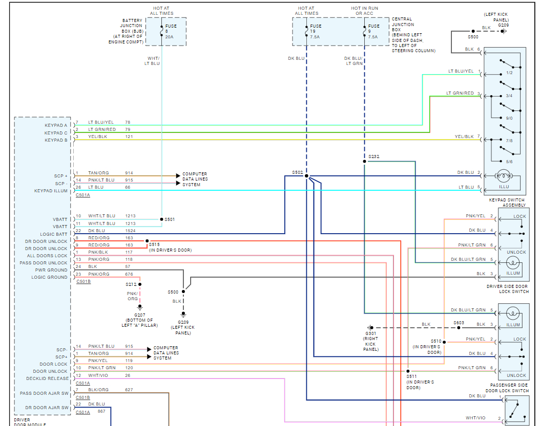 Okay, I was hoping for fuse #19 because both systems share that fuse. Did the fuse have power? So, it looks like the driver's door module has gone out, but I would check the other fuses as well. Here are the other fuses in the system and the wiring diagrams so you can see how the door lock and trunk work. Here is the location of the DDM so you can swap it out if the fuses are good. The wiring diagrams have the fuses you should check. Check out the images (below). Let us know how it goes.