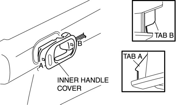 6. Pull the door trim upward and detach tabs B from the door.
