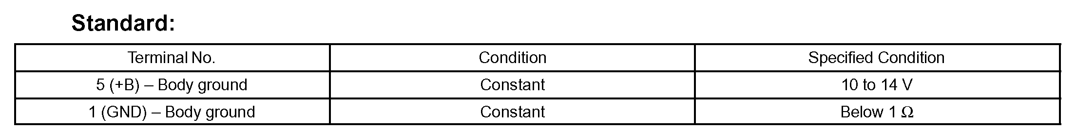 c. Reconnect the connector and check the voltage between the terminal and body ground.
