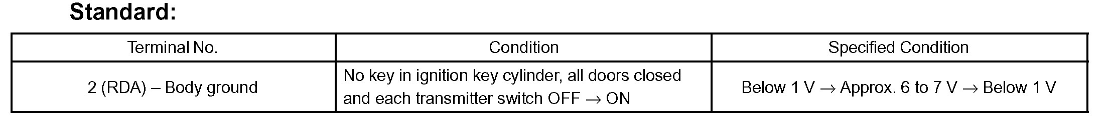 b. Check the voltage and resistance between the terminals of the wire harness side connector and the receiver and the body ground.