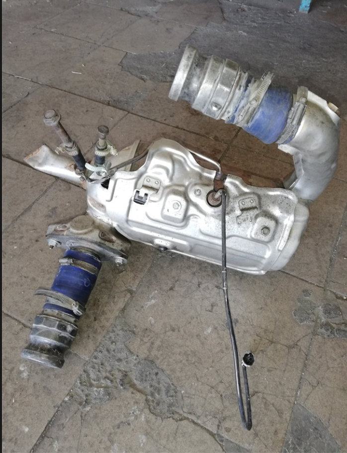 Unfortunately, we don't have this engine in our service manuals because it is not available in the US. However, here is a picture of one of your DPFs removed and on the ground. Hopefully this gives you a better idea as to what needs to be done to get it out.
