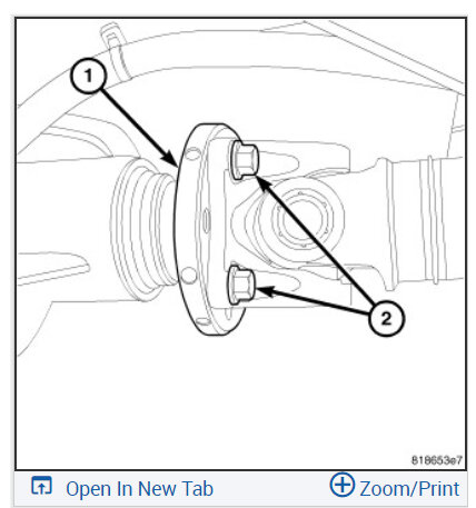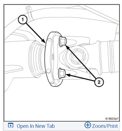 4. Remove the axle flange (1) bolts (2).