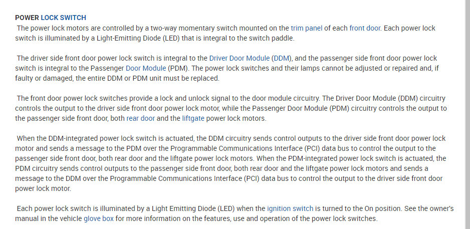 So when you press the driver side button to lock the doors, that sends a message to the passenger switch/module to unlock/lock that door.