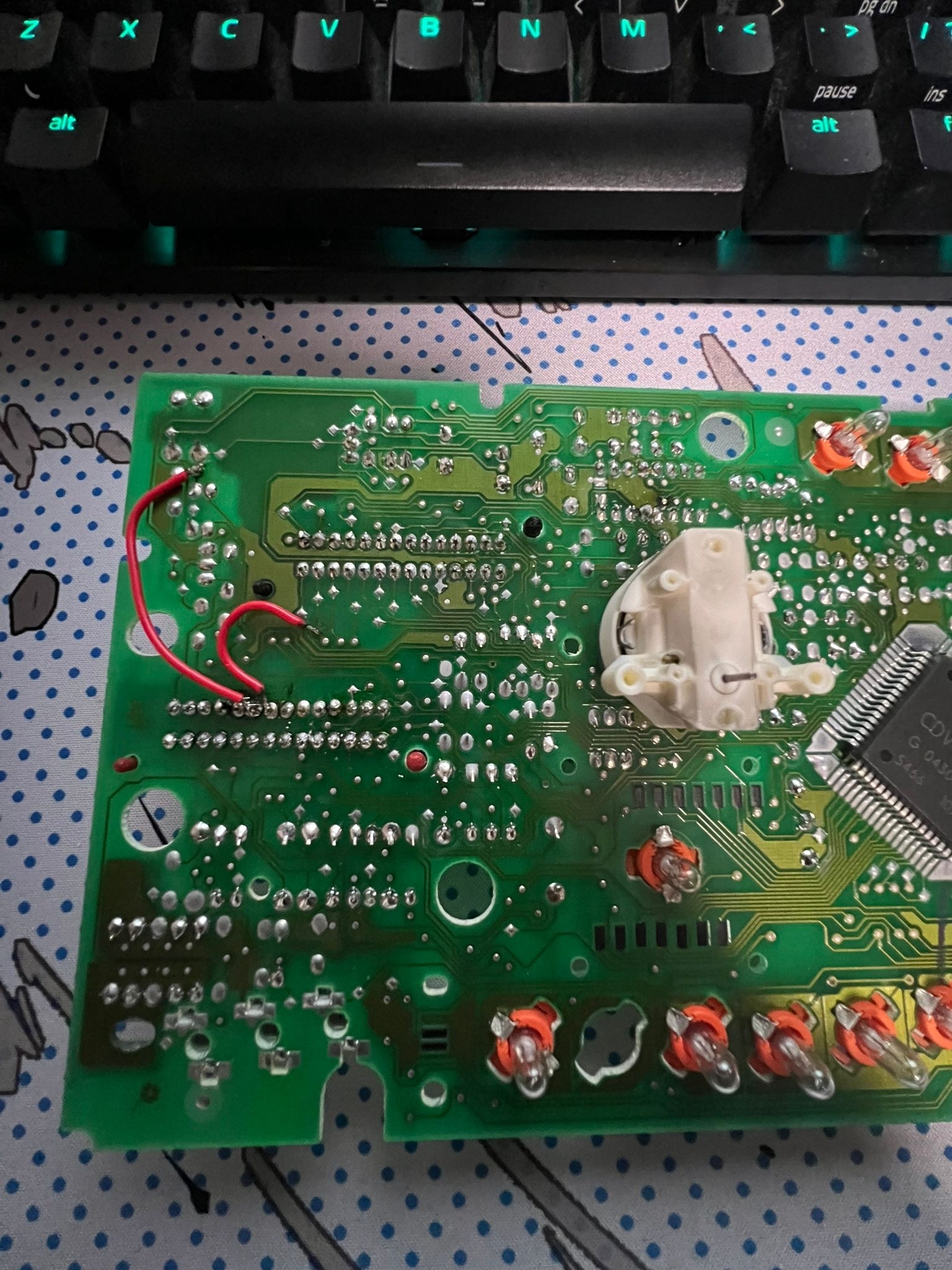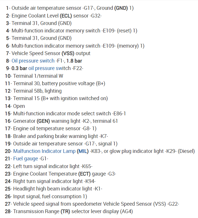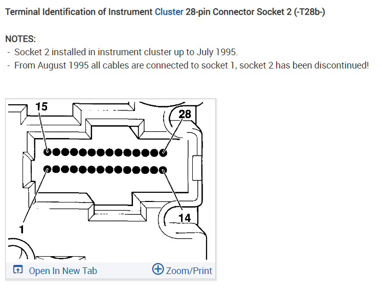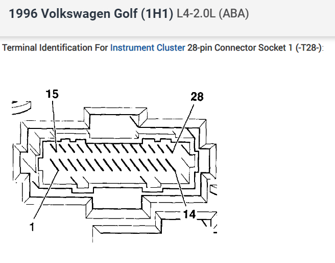 I have a speedometer cluster of a Goft MK3 2.0 GTI 115CV 8V American. It comes with two connectors that each have 28 pins. The cluster keeps failing and I need the wiring diagrams for the orange connector. I am trying to bridge the solders of the connection as this one is no longer attached to the board. But I have found it extremely hard to follow each connection on the board. If you could help and supply the wiring diagrams. The initial error was the speedo was reading Error rather than showing the actual KM. Do you know what could of caused this? Also, do you know if there is another cluster (1HM 919 910D) that I can use to replace mine? Will I encounter any issues if I buy a Speed Cluster with only one 28pin connector and will this work? Do you have any suggestions for which cluster I can use? Thank you